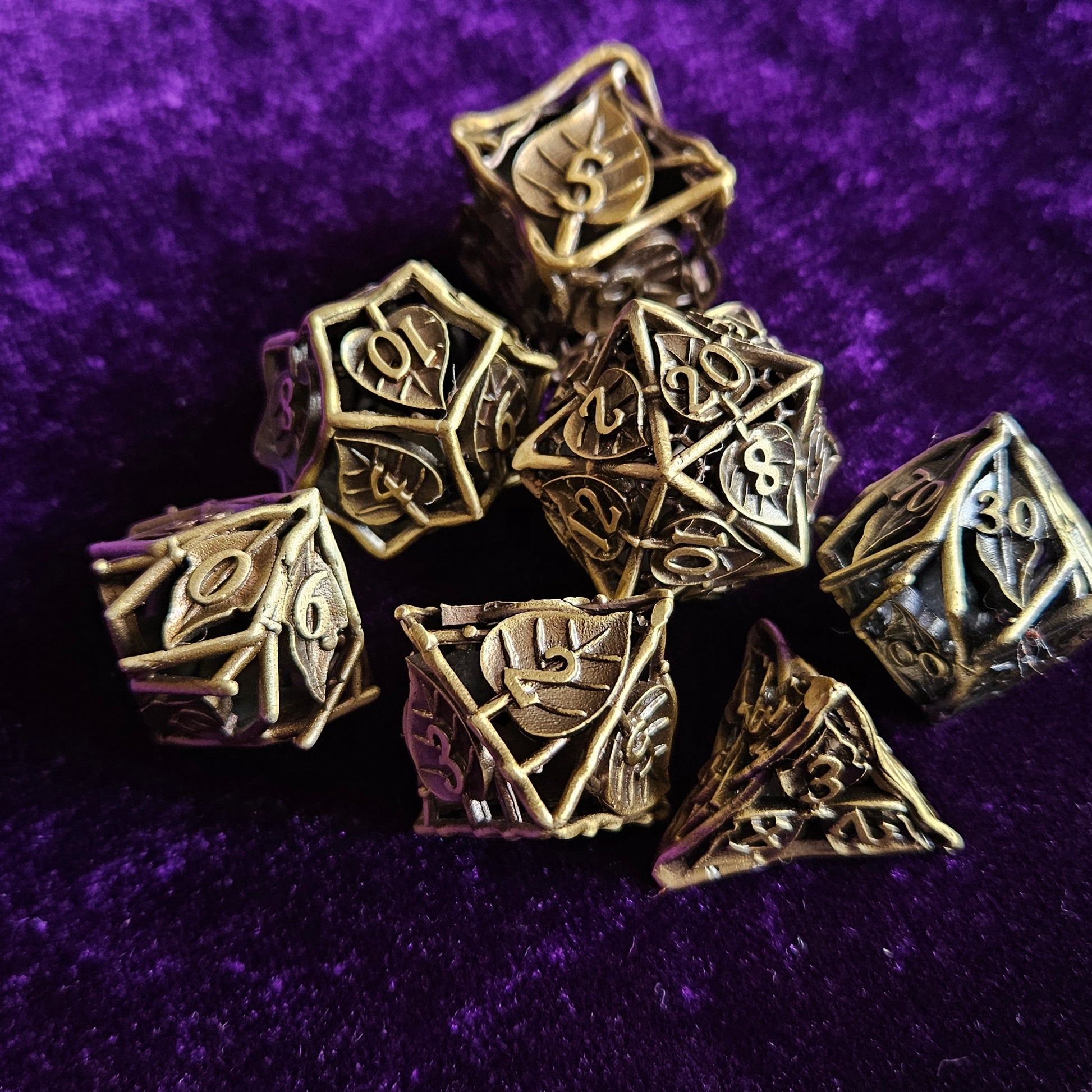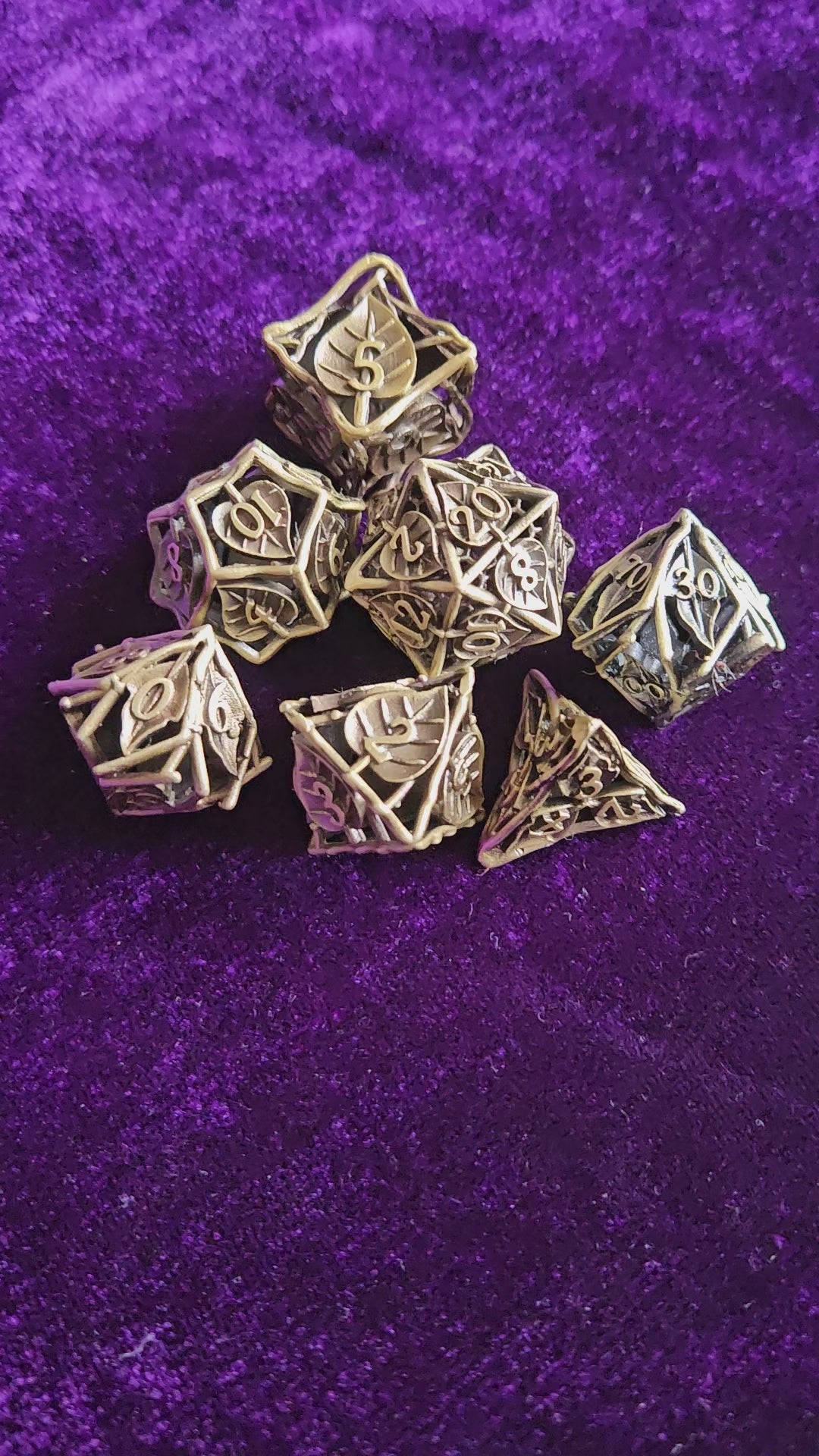 These hollow metal dice have stunning leafy detailing and jingle when you hold them together!
