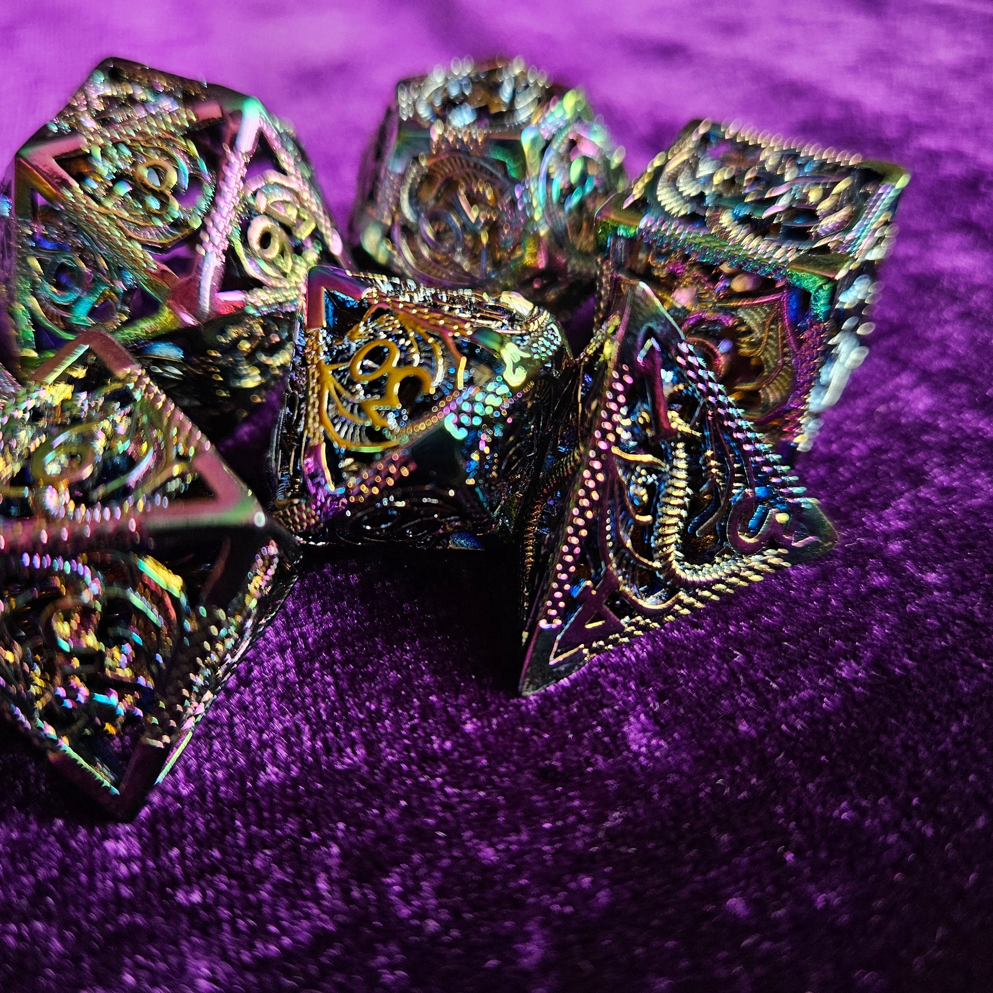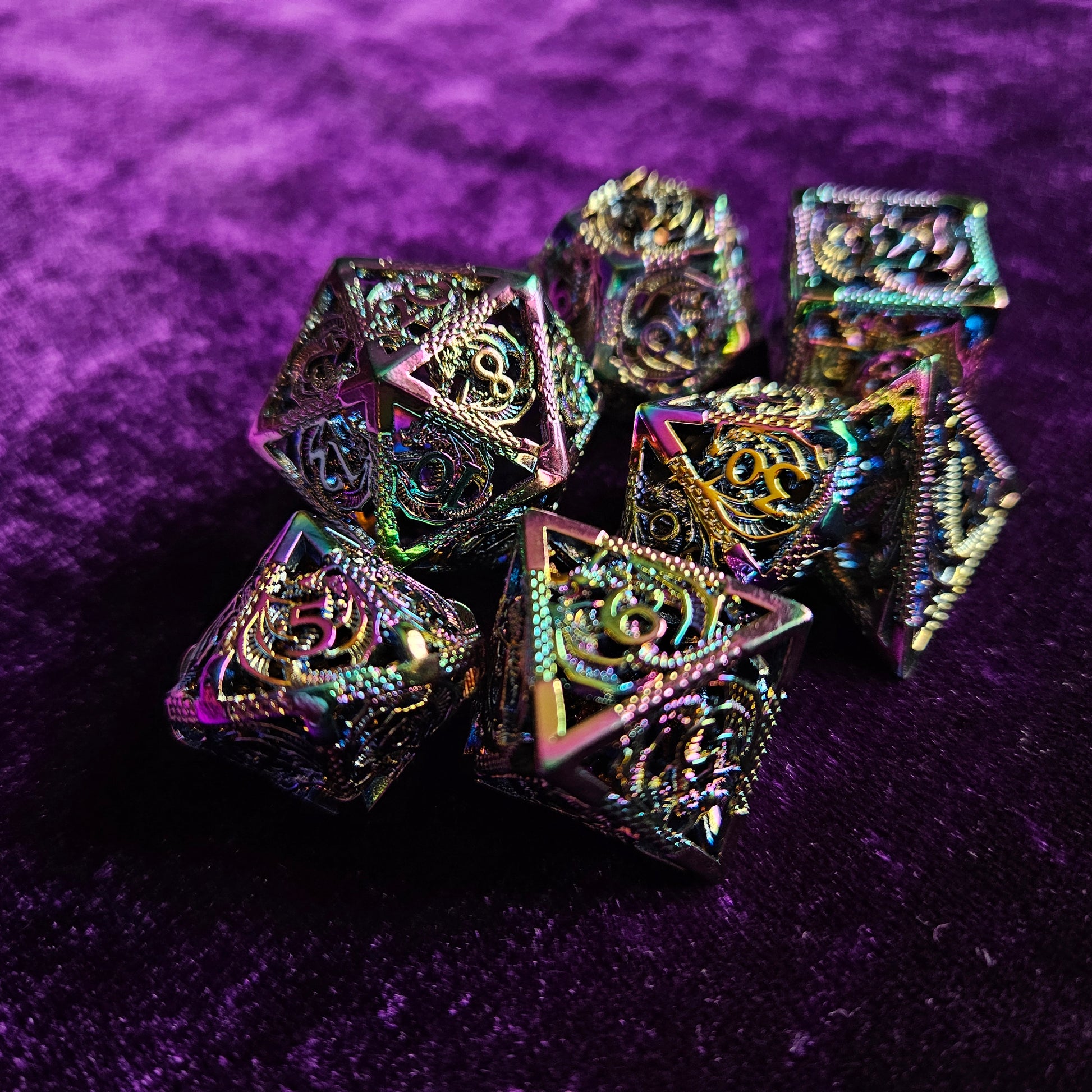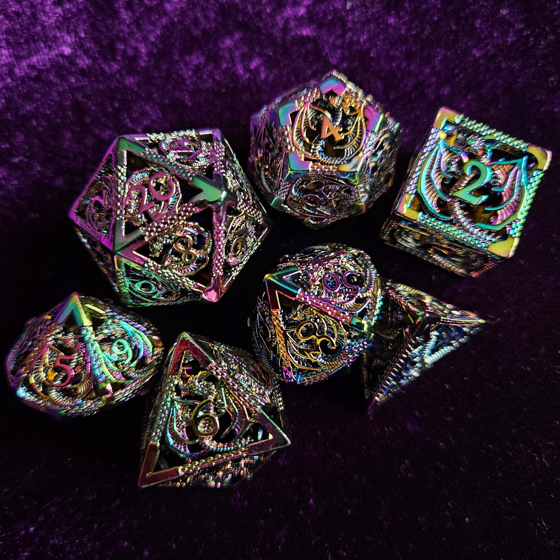 Hollow Metal Rainbow Dragon Polyhedral Dice