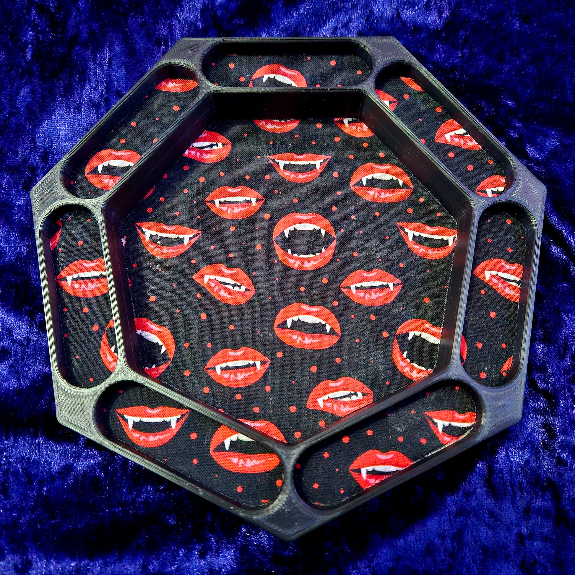 This 3D printed dice tray has spacious centre, felt base and holding sections around the edge. It can contain all the dice you'd ever need for an epic gaming session.